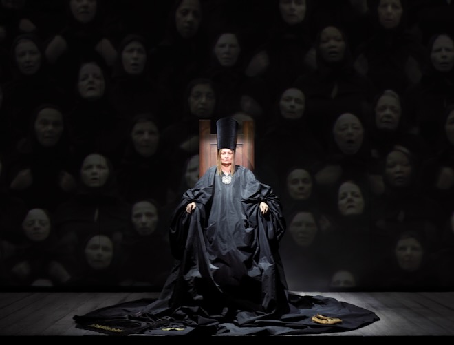 In one scene women in traditional folk costumes lift their skirts and expose their nakedness like they’re baring their teeth at an attacker, while across a pathway of giant prosthetic penises, men gyrate against the earth, literally trying to fuck it into fertility. Based on what I’d read about her other works, I’d expected a shocking, perhaps uncomfortable experience but that wasn’t my reaction. The absurdity of the giant penises made me laugh (what can I say, I’m immature). While the nakedness in other scenes, for example where unclothed women dance with the skeletons of their dead husbands in a cemetery was by turns vulnerable and powerful. I found it emotionally intense rather than erotic.