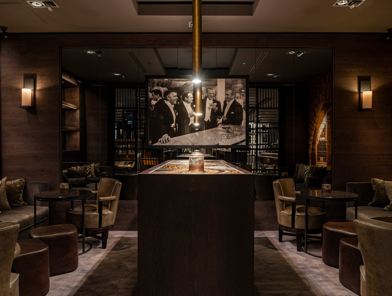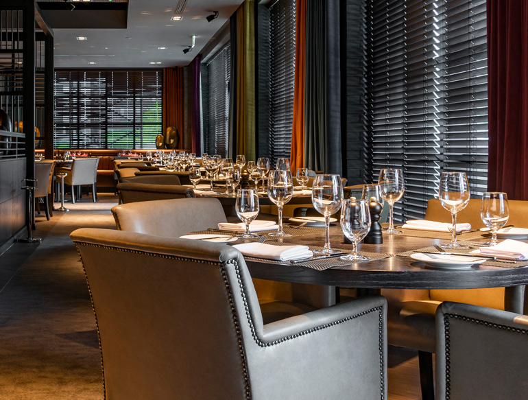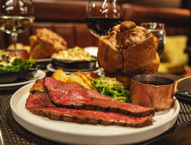 There is a heated, weather-proof outdoor terrace too, with its own lighter menu of bowls, small plates, caviar and cocktails. Brunch is served here every day.