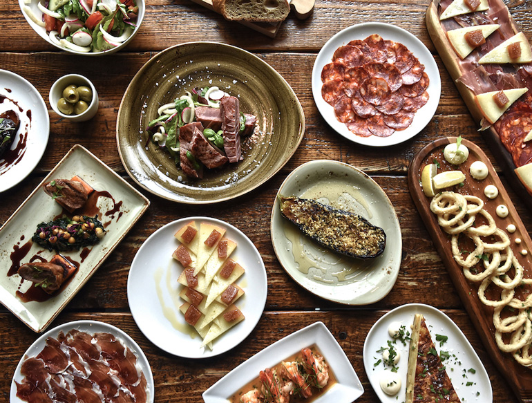 There are plenty of tables for groups of varying sizes and tall seats at the bustling bar, where you can enjoy almonds, Andalusian olives and other nibbles while grabbing a glass of Granada-brewed lager Alhambra Especial, on draft, or a choice of sherries from the Fino, Manzanilla, Amontillado, Cream or Pedro Ximenex selection. Evuna is also known for its range of uniquely hand-selected, award-winning, quality wines imported from Spain.