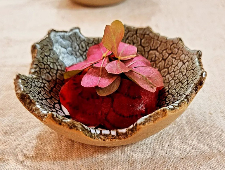 Vetch is a beautiful restaurant in every sense. Housed in a handsome Georgian building, it is light and appealing. Even the plates, cutlery and glassware are tactile and satisfying to use. It’s understated but unmistakable fine-dining-fancy.