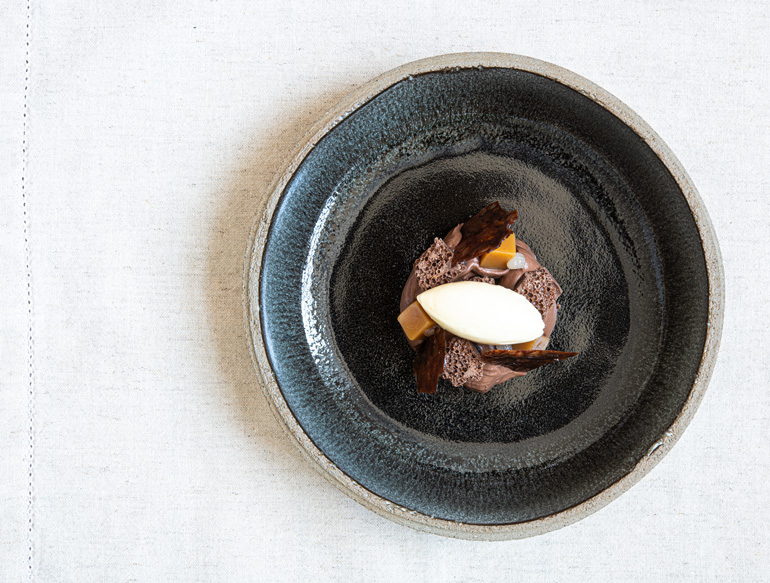 Typical dishes include smoked cod’s roe with chicken skin and ponzu, and lamb sweetbread with pine and katsuobushi. The influences are British, Asian and Nordic, all at once. If that sounds like a right old muddle, rest assured, in the deft hands of Daniel McGeorge it is anything but.