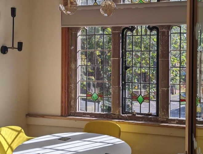 Housed inside Withington Baths, Withington Works is a co-working space offering standing and sitting desks as well as a bookable meeting room. It’s right next to the garden; handy when you want a break and some fresh air. And not many workplaces have a swimming pool on site. The day rate is £15 or £20 including access to the baths. There’s free parking too.