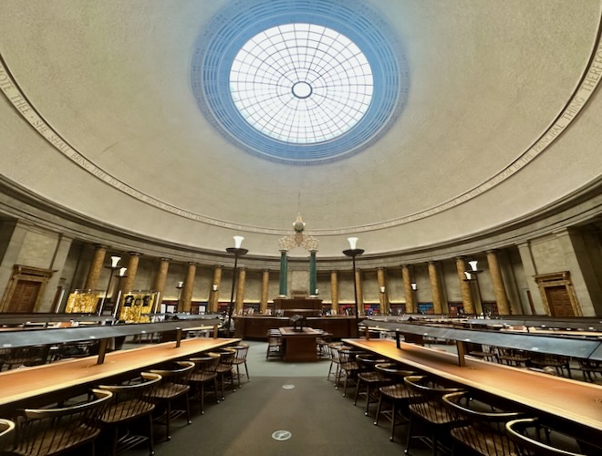 The Reading Room at Central Library is a popular spot for a day of study or quiet productivity. It’s free to use and nobody minds if you bring a cup of tea in with you. There are some plug sockets but not at every desk so charge your laptop before you get there. Obviously it’s not the place for taking calls (and with the echo created by the huge dome, you really wouldn’t want to).