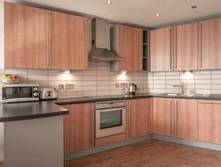 There are 62 serviced, one bed or two bed apartments, many with views of the city centre. All rooms have a fully-equipped kitchen and everything is clean and bright. More than that, there are cosy touches and all the little bits and pieces you need to feel at home.