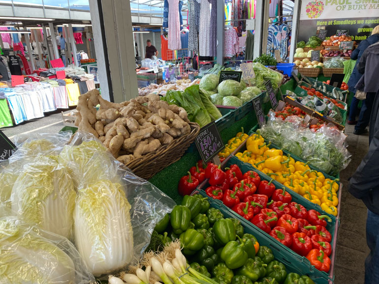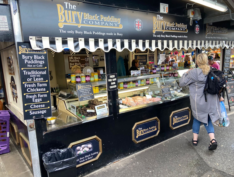Moving on to the Edward and Margaret Blocks, there are plenty of small stalls to explore. Harry Muffins and Pete’s Tea Room have great traditional cakes and pies. Bury Black Pudding Co. and Chadwick’s Black Pudding stall sell their namesakes, whole chickens and even fresh tripe for the adventurous or traditional cook.