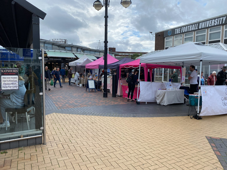 The larger indoor market hall area is currently closed due to discovery of RAAC concrete and it’s not clear yet when this will be reopened. Most of the traders have been relocated within the outdoor market and within the Mill Gate shopping centre.
